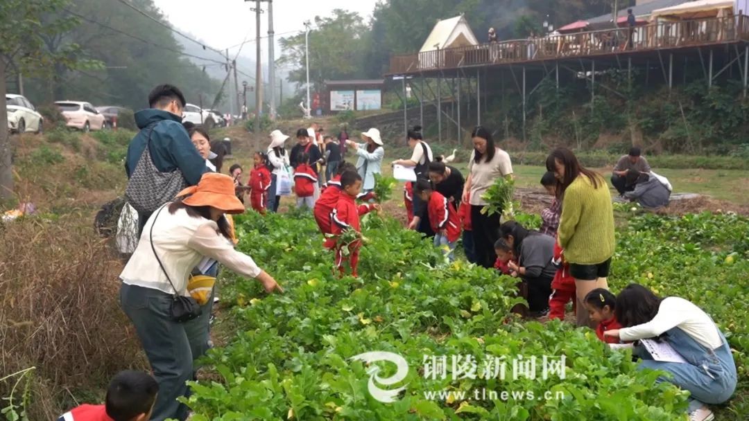 近日,铜陵师范附幼紫金园区中一班来到印象河边生态田园综合体开展拔萝卜亲子农事体验活动。此次活动让小朋友们通过观察、触摸等方式了解了农作物的生长情况,增强了孩子们的动手能力,让他们在寓教于乐中健康成长。(邢琛)