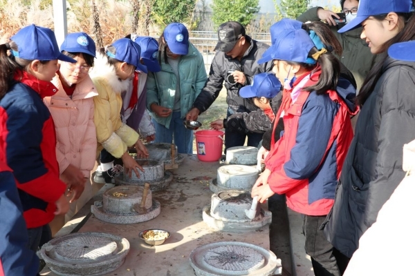下一站来到了研学馆,同学们学习中华传统礼仪、磨豆腐、神笔画画、桌游乐高、动乐园体验等。