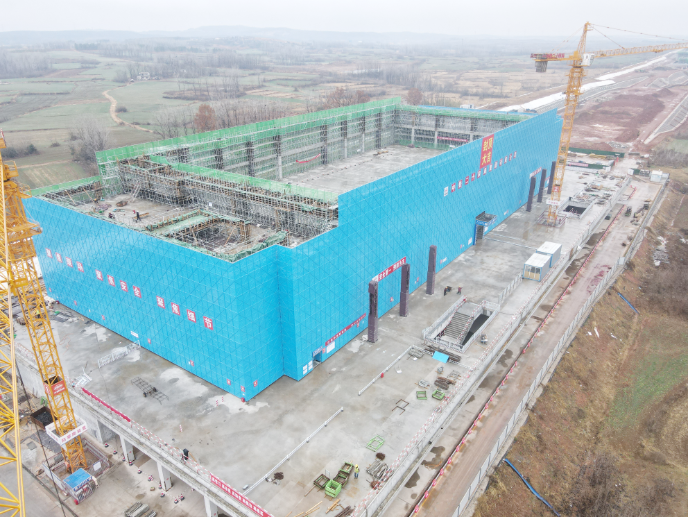 近日,在安徽省明光市明西街道西徐村明光西站施工现场,随着最后一方混凝土浇筑完成,标志着新建合肥至新沂高铁(以下简称合新高铁)明光西站站房混凝土主体结构全面封顶,项目建设进入钢结构及装饰装修阶段。