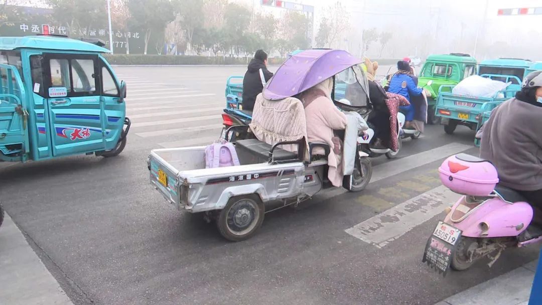 在柴胡路与嵇康路交叉口附近,一辆字母G开头的电动三轮车因未 按规定时间上路,被交警 拦下。