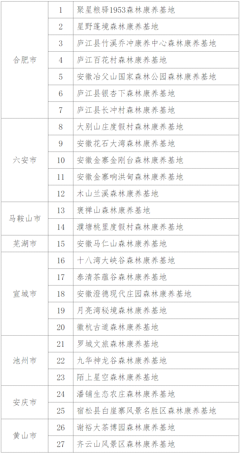 安徽省森林康养基地(第三批)名单