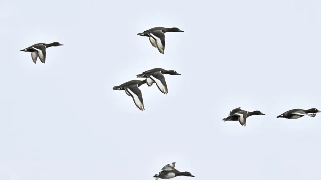 钱茂松介绍,当时他正在巢湖半岛湿地拍摄迁徙的候鸟,突然一群雁鸭类鸟儿从远处芦苇荡里一跃而起,抬头一看,竟然是国家一级保护动物青头潜鸭。“一下就看到了21只,真的太幸运了。”去年2月份时,他曾在这里发现过10只青头潜鸭。