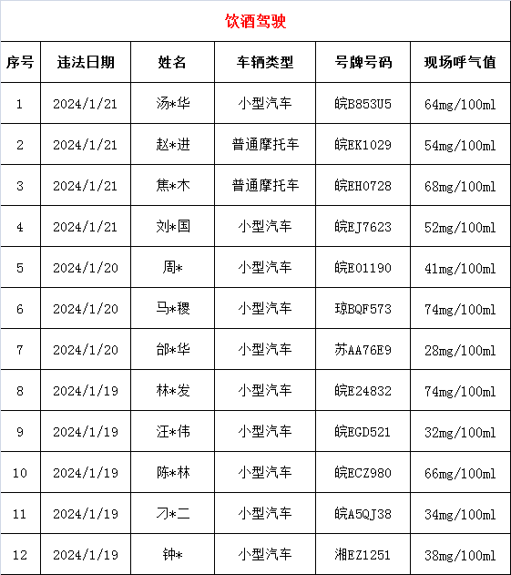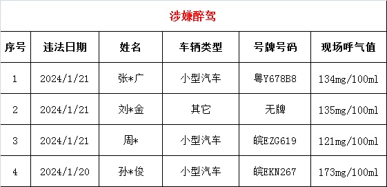 1月19日至21日,交警部门共查获酒后驾驶16起(涉嫌醉驾4起)、无证驾驶2起、客车超员28起、货车超载9起,起到了强有力的震慑作用。
