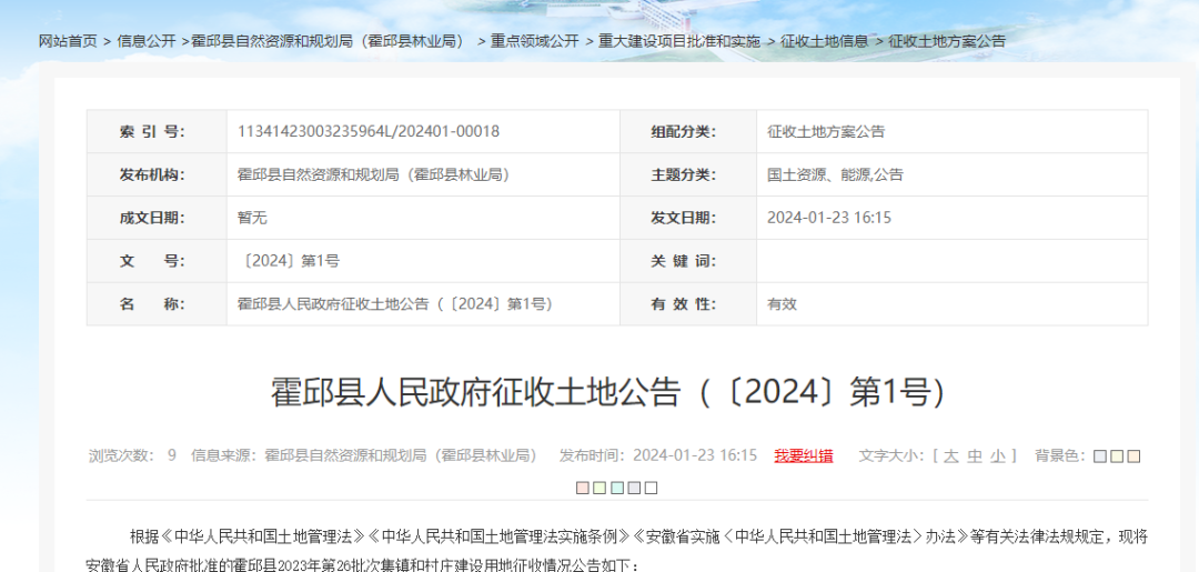 根据《中华人民共和国土地管理法》《中华人民共和国土地管理法实施条例》《安徽省实施〈中华人民共和国土地管理法〉办法》等有关法律法规规定,现将安徽省人民政府批准的霍邱县2023年第26批次集镇和村庄建设用地征收情况公告如下: