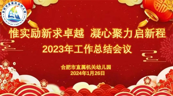 回眸2023,我们齐心协力,不懈奋斗,以情怀和勇气搏击市直幼教育蓝天;展望2024,我们更将沉淀过往,扬帆勇进,凭智慧和坚定实现教育梦想。合肥市直属机关幼儿园在党支部书记、园长朱晨曦的部署下,于1月26日在四楼报告厅召开“惟实励新求卓越 凝心聚力启新程”2023年度工作总结会议。本次会议由王慧彦老师主持,全体教职工参会。