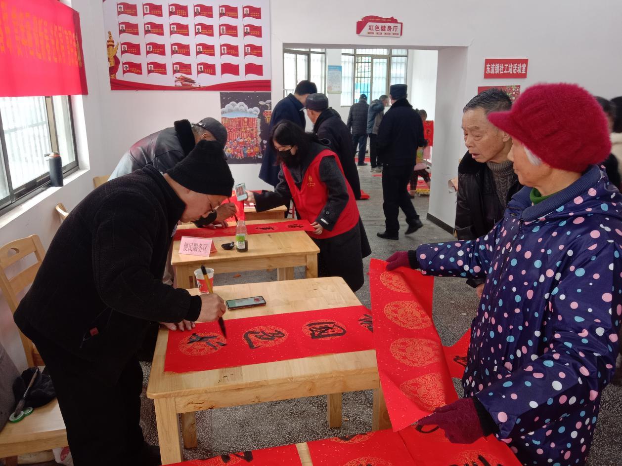 “辰龙送瑞,春联传福。”新春佳节将至,为更好弘扬中华优秀传统文化,丰富社区内居民的精神文化活动。 1月31日,安徽省池州市东至县东流镇城北社区举办了“泼墨迎春·福至万家”主题活动。活动共分便民服务、健康义诊和政策宣传三大板块,包含送对联、免费测血压血糖、三公里就业政策和交通安全宣传等内容。