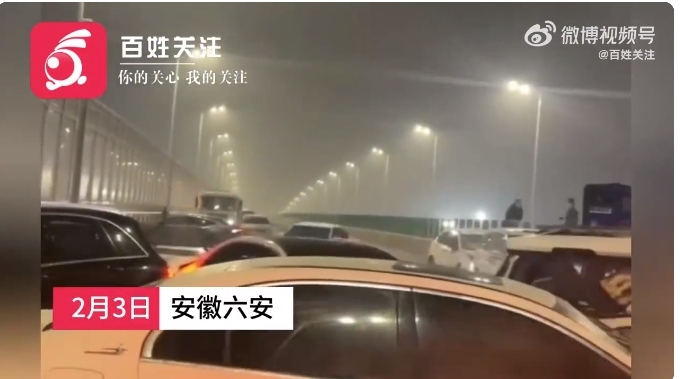 2月3日,安徽六安金安区G312快速路高架皋陶大道附近多车追尾,现场多人受伤。据现场多名司机称,因桥面结冰打滑,导致车辆失控追尾。