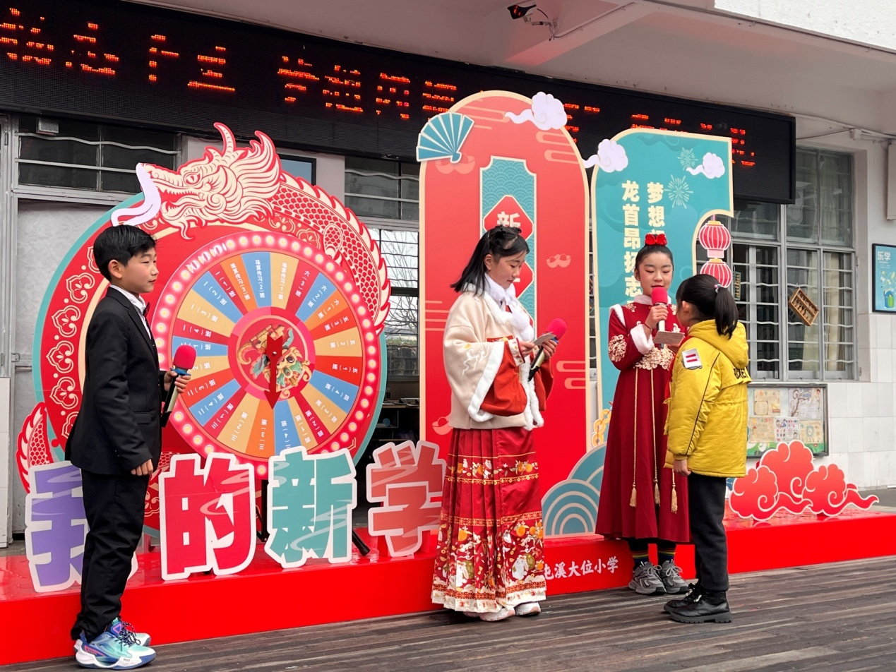 活动现场,非遗表演“鱼灯舞”、新年有奖竞猜有奖问答,为新学期的学生营造了浓厚的“家庭式”教育氛围。“新的学期来了,心里感到十分的开心,马上就要四年级了,又长大了,新的学期,我有新的目标,希望在学习上有更大的进步。”屯溪大位小学 学生张洛说。