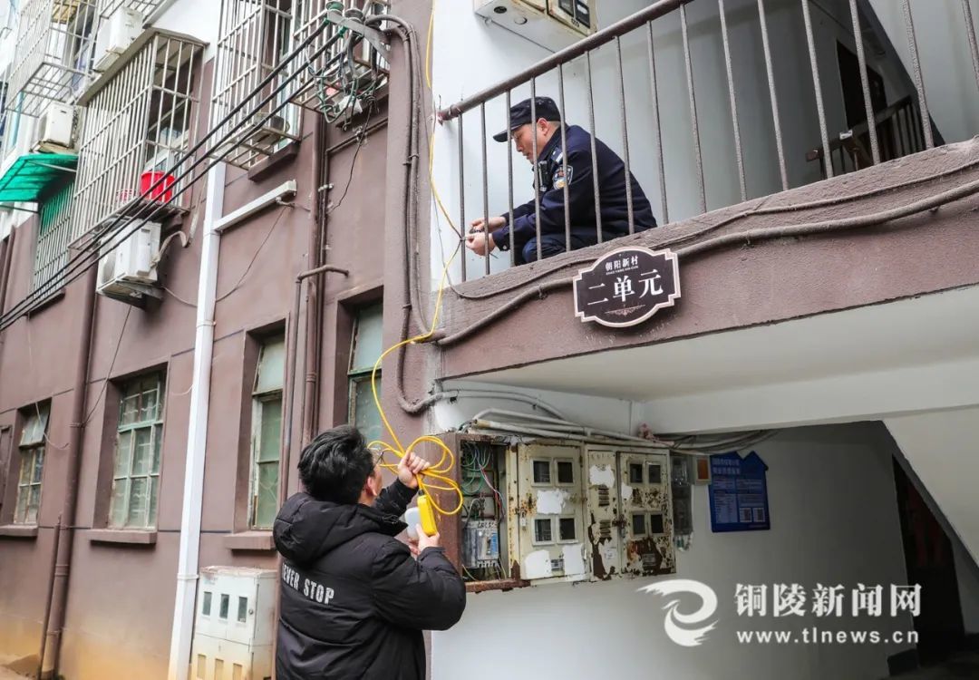 2月28日,铜陵市铜官区朝阳社区工作人员和杨家山派出所民警正在清理辖区朝阳新村楼道的“飞线”。据了解,该社区联合辖区公安、城管等部门开展“电动车飞线充电”专项整治行动,通过宣传和帮助整改等形式,消除辖区居民电动车“飞线充电”问题,保障小区的消防和电力安全。(高凌君)