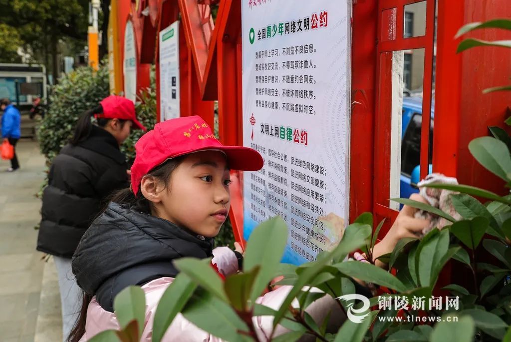 3月1日,铜陵市铜官区鹞山社区的娃娃楼长们正在清理社区宣传栏。据了解,该社区关工委联合爱国小学开展“雷锋精神代代传,娃娃楼长展风采”活动,组织20位娃娃楼长通过聆听雷锋故事、开展志愿服务的形式,践行和弘扬雷锋精神。(记者 高凌君)