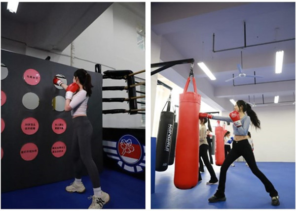 谈及开设这节课的初衷,关啊翠表示:“巾帼不让须眉,我希望用拳击课堂教会我的学生们不被定义,做独一无二的自己,去自信地、热烈地展现女性的魅力与力量!”(文图/李赛赛 谢晓函)