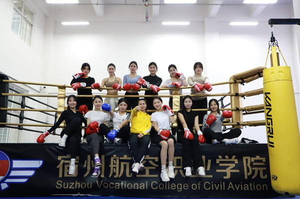 3月7日下午,宿州航空职业学院的散打实训室里,一堂主题为“拳力出击,不畏定义”的拳击课正火爆开课。主讲老师关啊翠,是宿航院体育教师、国家级散打运动员。在三八妇女节来临之际,她选择开设一堂女子拳击课,与女学生们共迎妇女节。