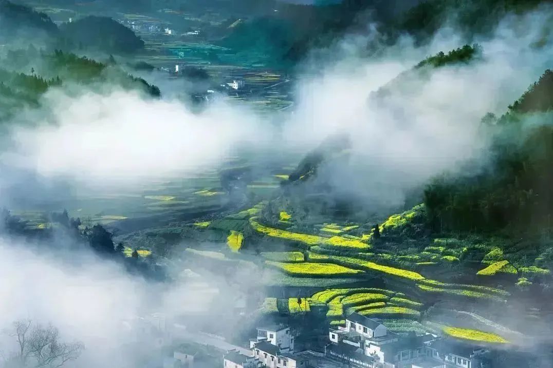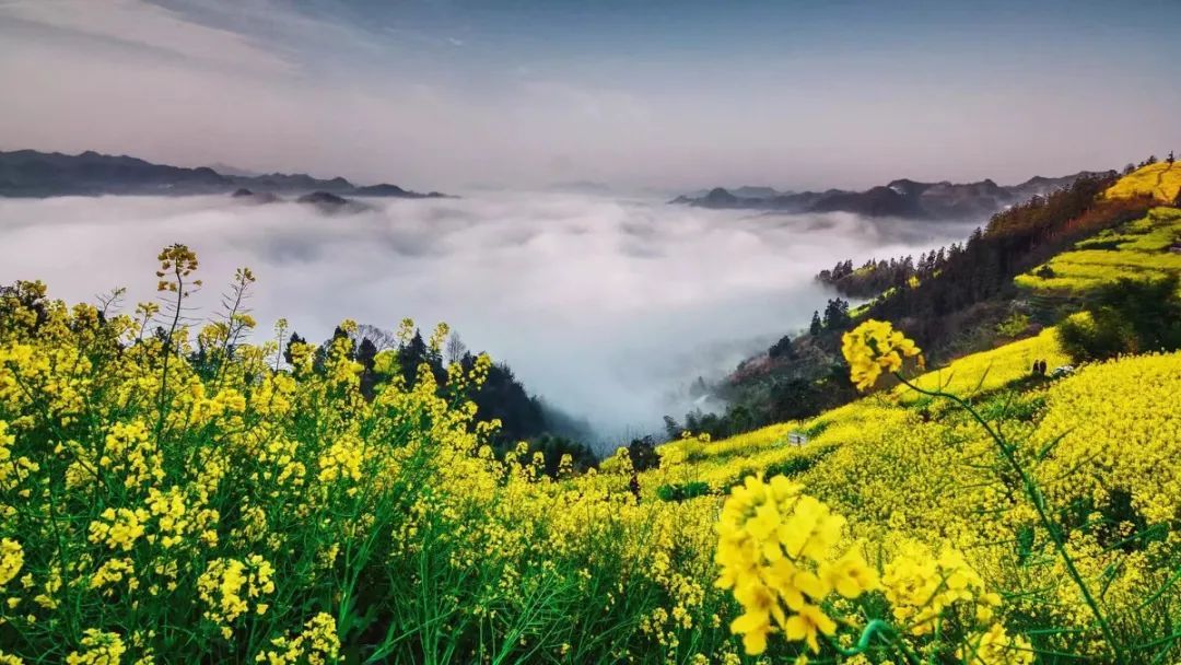 藏在石台牯牛降的油菜花,凭借富硒土壤,在静谧山谷里开得灿烂。整齐的梯田伴着巍峨青山与悠悠白云,让一切都美得恰到好处。徜徉于花海之间,再深吸一口负氧离子爆棚的空气,就是春日里真切的幸福。