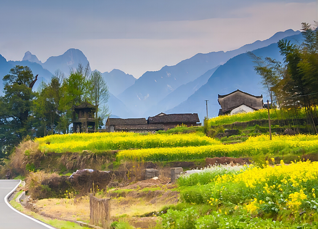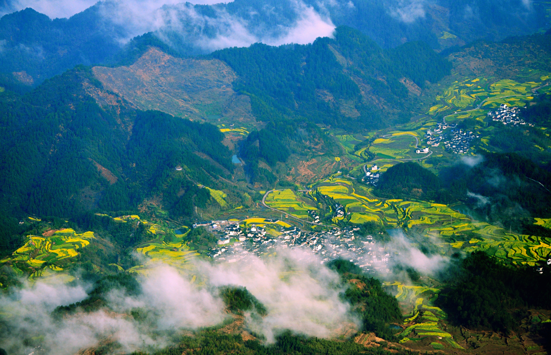 皖南的山间,散落着风景如画的山村,如同一颗颗耀眼的明珠。地处高山的石潭,有着诗情画意的村边水口景观、淡雅明快的建筑色调。铺展在田间旷野的油菜花,清新自然、明媚动人。