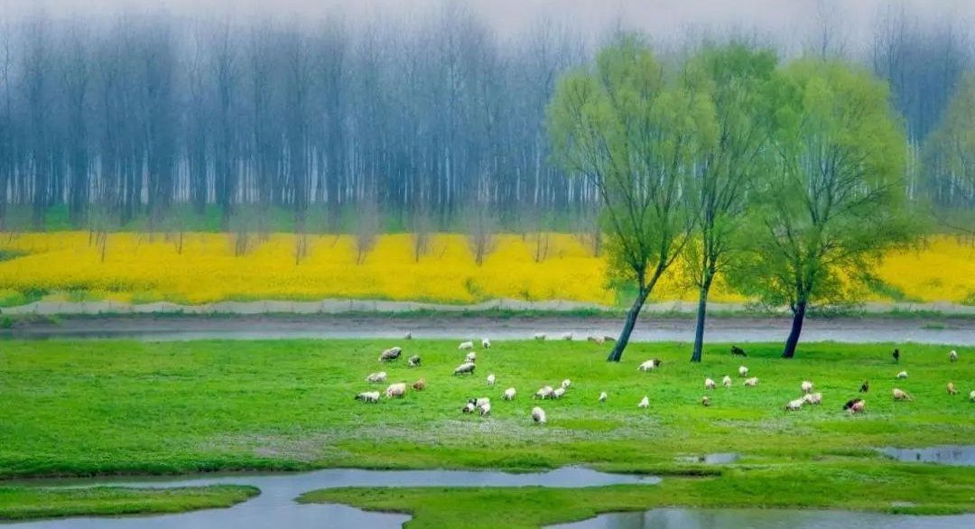 如果要用一种颜色形容春天的小岗村,那一定是金黄。