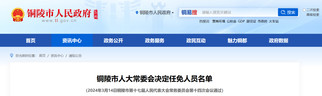 铜陵市人大常委会决定任免人员名单