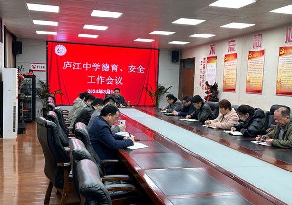 为进一步落实庐江中学德育、安全管理工作要求,推进和督促庐江中学各年级部德育、安全工作的常规开展,构建和谐、平安的青少年学习生活环境,3月14日,庐江中学组织召开了3月份德育、安全工作会议。校党委委员、副校长姚贤文主持会议并讲话。政教处主任鲍胜平,教务处主任刘义林,团委书记佘晶晶,年级部分管领导、年级部长以及政教处、总务处和团委全体人员参加会议。