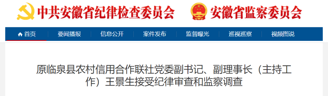 原临泉县农村信用合作联社党委副书记、副理事长(主持工作)王景生涉嫌严重违纪违法 ,经安徽省纪委监委指定管辖,目前正接受淮南市纪委监委纪律审查和监察调查。(淮南市纪委监委)