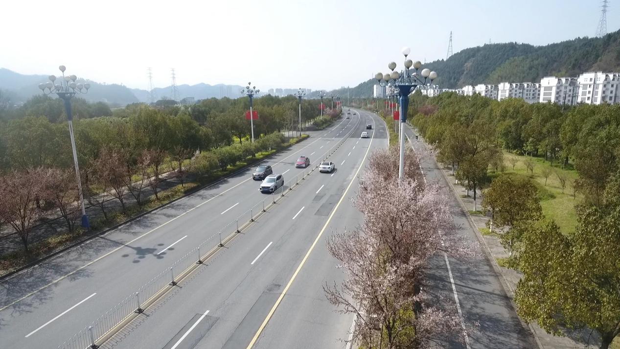 仲春时分,繁花尽染,人间已多青绿,在黄山市中心城区屯光大道两旁,李花盛放,增色大好春光。
