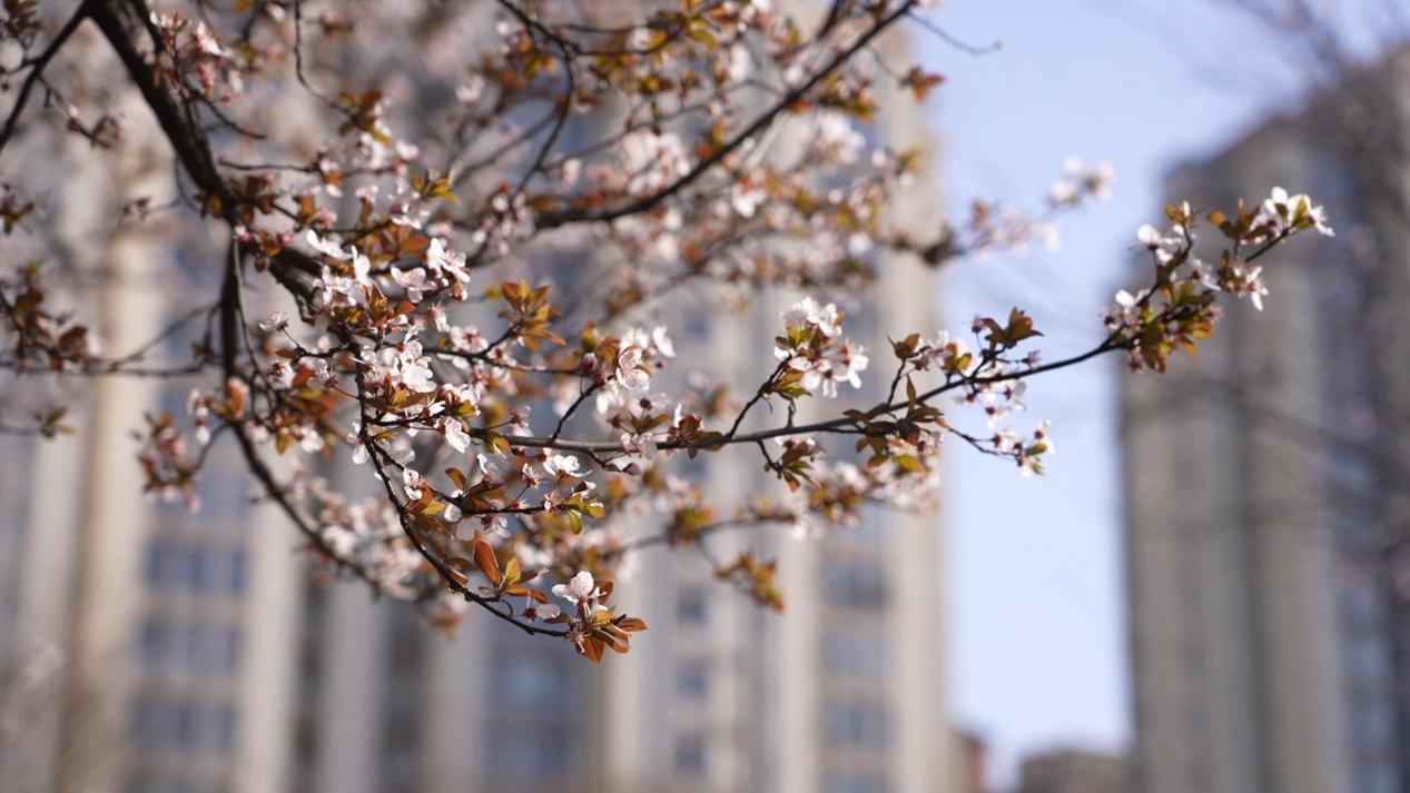 市民任芸玉这两天在屯光大道附近散步,忽然发现非常多的紫叶李已经开花了,任芸玉说:“粉白的花朵、青色的草地、远处的油菜花。感觉春天的气息扑面而来,让人心情非常愉悦,这样的景色感觉生活都充满了幸福感。”
