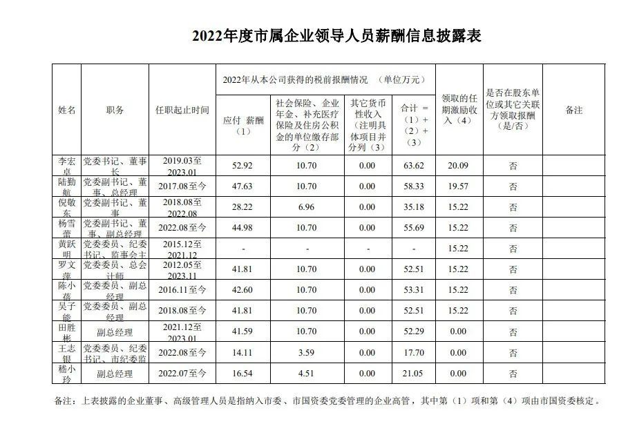 其中,合肥建投党委书记、董事长李宏卓,任职起止时间显示2019年3月至2023年1月,2022年从本公司获得的税前薪酬为52.92万元,社会保险、企业年金、补充医疗保险及住房公积金的单位缴存部分为10.7万元,合计2022年从该公司获得的税前报酬为63.62万元,任期激励收入20.09万元。
