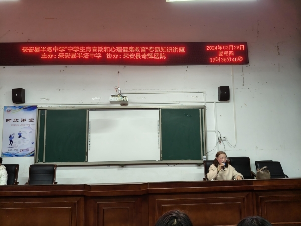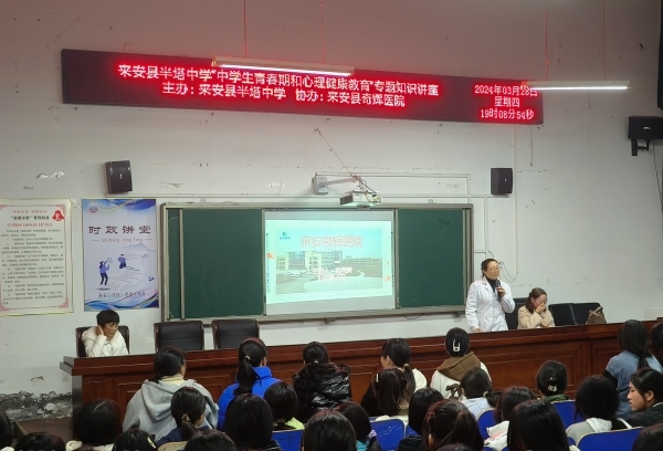 为积极响应“为党育人,为国育才”的宗旨,致力于落实“立德树人”的根本任务,以服务未成年人健康成长为根本出发点,3月28日晚,来安县半塔中学邀请心理健康教师和半塔奇辉医院医生举办一场中学生青春期和心理健康知识讲座。