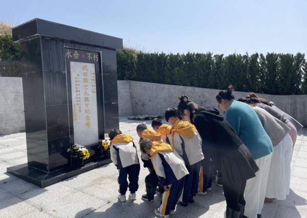 “铭记历史、缅怀先烈、珍爱和平、开创未来。”正是无数先辈前仆后继的牺牲才换来我们今天的美好生活。在纪念碑前,幼儿代表怀着无比崇敬的心情走向烈士纪念碑,向革命先辈敬献花束。全体师生默哀三分钟,寄托哀思,千言万语,仿佛都寄托在这沉默的三分钟中,愿英烈们的英魂永存。