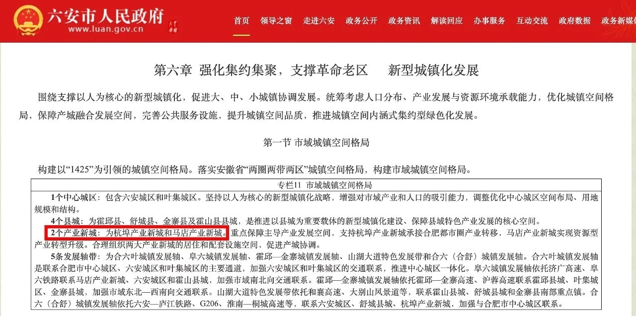 近日,安徽省人民政府批复《六安市国土空间规划(2021-2035年)》,规划中提出按照Ⅱ型小城市标准,建设马店和杭埠产业新城。正式将霍邱县马店镇和舒城县杭埠镇列为Ⅱ型小城市(20万及以下人口的一般城市)。