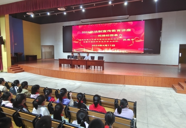 为了全面落实来安县教育体育局《来安县教育系统预防未成年人违法犯罪专项行动实施方案》的精神,加强未成年人法制宣传教育,2024年4月11日,来安县汊河实验小学教育集团法制副校长武竞宇律师走进校园开展法制教育讲座,普及法律常识,重点讲述未成年人违法犯罪的处罚,严禁校园欺凌事件的发生,教育学生从小树立法律意识,做遵纪守法小公民。