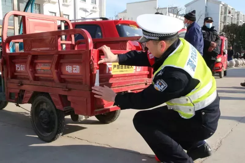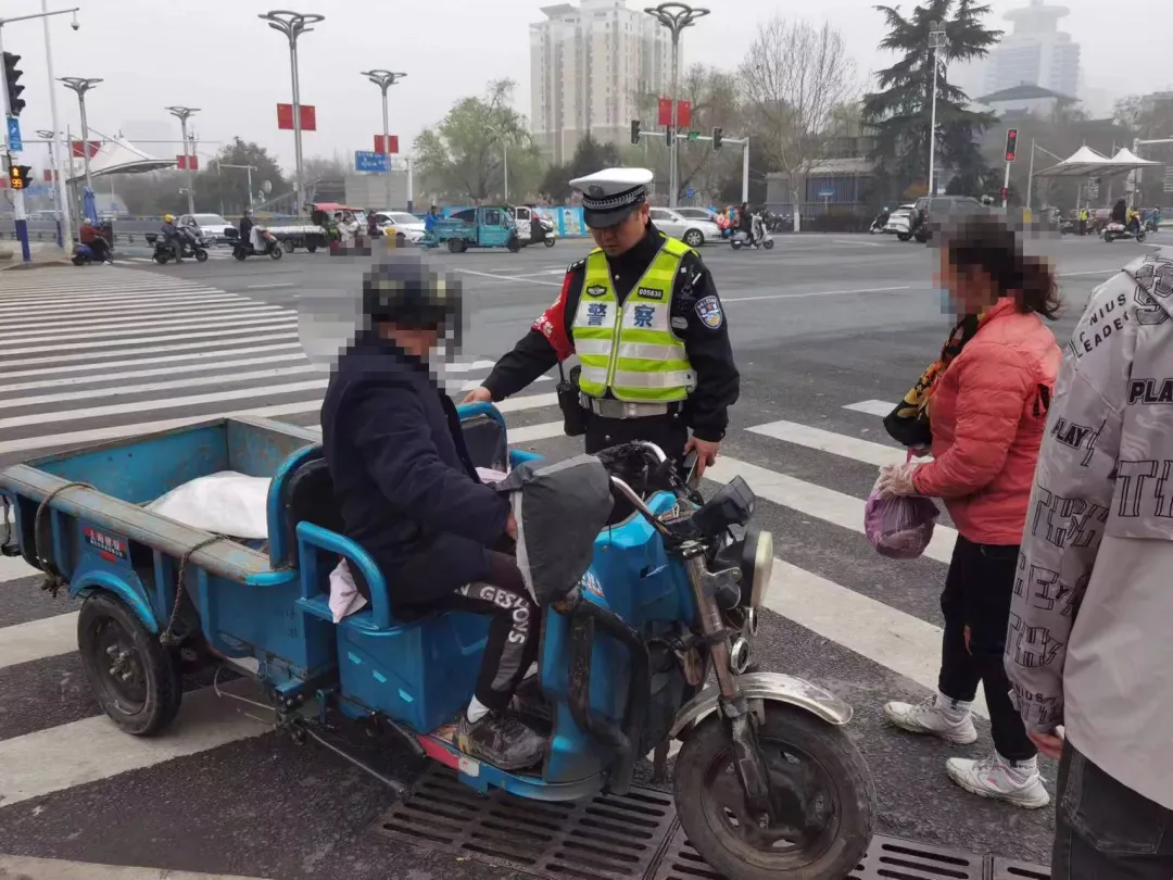 △合肥交警支队瑶海大队民警在辖区重点路段对三轮车相关违法行为进行查处。