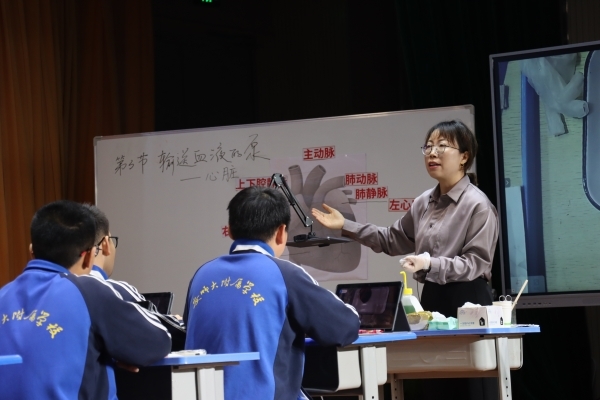 开幕式后,活动拉开了帷幕。首先进行的是两节教学展示课,由合肥市第四十六中学南校区郑艳老师、合肥市五十中学西校张晓明老师共同围绕《输送血液的泵--心脏》,给与会老师展示了一节完整的大单元课例。郑艳老师在第一课时的教学中以“猪的心脏”为观察对象,通过“心脏灌水实验”等一系列探究任务和精心设计的问题串,引导学生逐步构建出心脏的内部结构和心脏的工作原理。教学过程中发挥学生的主体地位,通过分析、推理、论证、归纳,充分发展了学生的科学思维。
