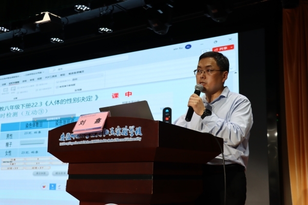 然后,由合肥市第四十八中学滨湖校区办公室主任刘鑫给老师们进行了智慧课堂的培训,他从智慧课堂特点、新课标的要求、技术支持、工具应用等四个方面,阐述了智慧课堂对教学、对教师、对学生的影响。