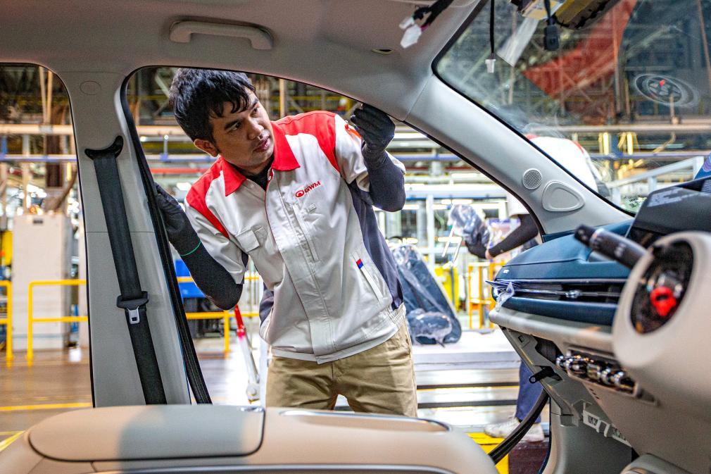 1月12日,工人在位于泰国罗勇的长城新能源汽车制造基地生产车间内工作。新华社记者王腾摄