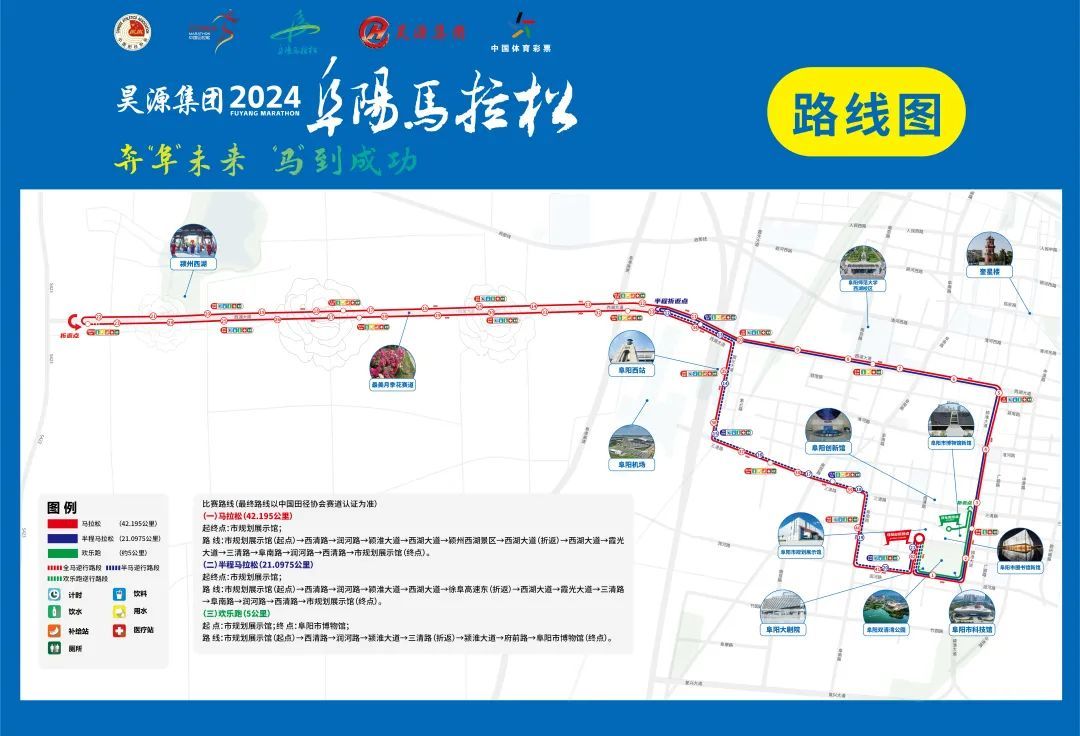 “瞰阜阳”工作室记者梳理发现,2024阜阳马拉松共设置了马拉松、半程马拉松、欢乐跑三个项目。 其中,“全马”从阜阳市城市规划展示馆,经颍淮大道、西湖大道至颍州西湖折返回原点,全程42.195公里。