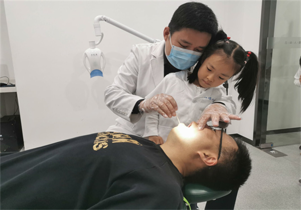 走进社区佳德口腔医院,小朋友们化身“小牙医”,在工作人员的讲解下,进一步了解牙医的日常工作,认识牙齿的结构,分析龋齿产生的原因,了解正确刷牙的方法,激发保护牙齿健康的意识。“小牙医”认真地为家长们检查口腔,不仅收获了社会角色和保健知识,也在实践体验中敬畏每一位辛勤的劳动工作者,给孩子们留下了一次难忘的体验和经历。