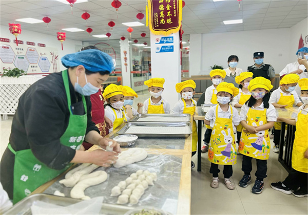 香喷喷的味道是什么?来到庐阳区海棠花园社区食堂,食堂工作人员热情地带领小朋友们参观食堂整体环境,细心讲解厨师的日常工作。小朋友们迫不及待地穿上围裙,卷起袖子,当起“小厨师”,和大厨学习制作包子。和面、擀面、放馅…“小厨师们”动作麻利,有模有样,在亲手制作的过程中体验到劳动的辛勤与美好。