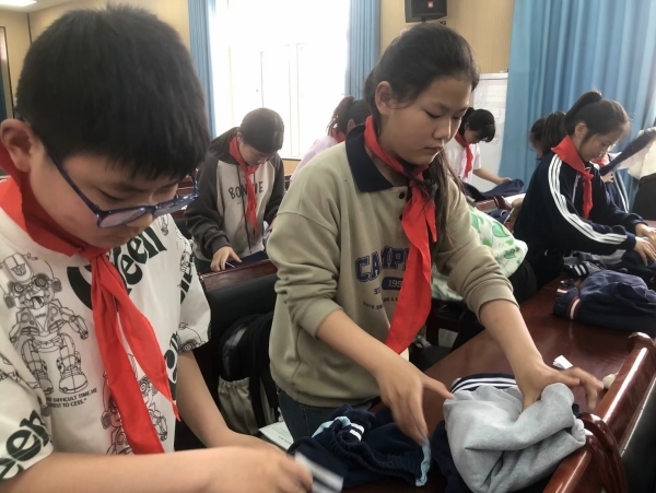 该校依据各年龄段学生的发展特点,分年级开展了丰富有趣、活力满满的劳动技能比赛。一年级孩子们进行书籍和书包整理、叠衣服、剥蒜瓣共3种生活技能比赛;其他年级的孩子们进行佩戴红领巾、书籍和书包整理、叠衣服、剥蒜瓣共4种生活技能比赛。