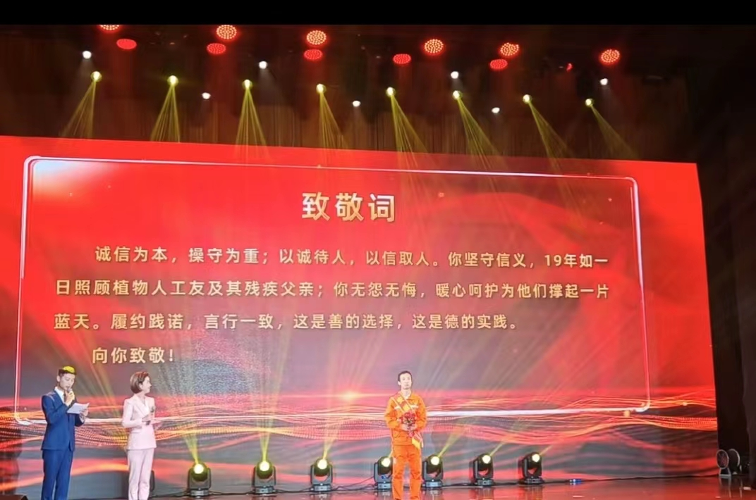赵全喜,一位普通的社区居民、企业职工,他没有惊天动地的壮举,在19年的漫长岁月中,默默照顾一位植物人工友,以自己无私的奉献坚守许下的诺言。