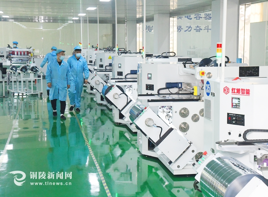 5月8日,位于铜陵狮子山高新区的赛福电子有限公司车间里,工人们在生产电容器用金属化薄膜。