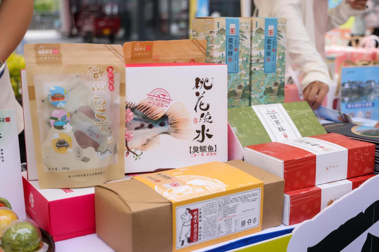臭鳜鱼、祁门红茶、徽州豆干……在黄山市展区,诸多特色美食、文创产品吸引众多游人驻足观看。