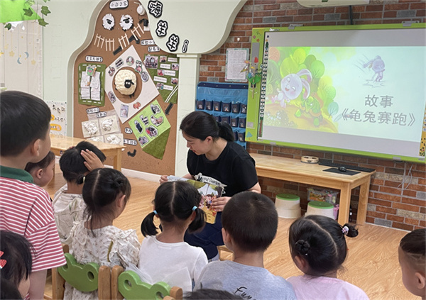 小二班杨晟蕊杨晟硕妈妈给小朋友带来《龟兔赛跑》的故事,小朋友们听得津津有味,通过有趣的故事明白了不要轻视对手,踏踏实实做事,并且坚持到底才能取得成功。