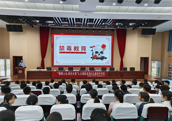 在第37个国际禁毒日来临之际,为进一步让学生了解毒品的危害以及毒品犯罪的相关知识,6月21日,博望派出所和区检察院等部门联合走进马鞍山二中附属新博中学,开展了以“健康人生,绿色无毒”为主题的禁毒教育宣讲活动。
