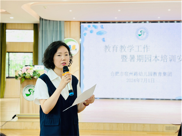 最后,集团副园长白霞向全体教师详细解读了《2024宿州路幼儿园教育集团暑期园本培训安排表》,明确学习目的、时间、地点、内容和学习形式。希望全体教师将本次培训作为提升专业能力和教学质量的重要机会,以饱满的热情和严谨的态度投入到学习中,确保这次暑期园本培训活动取得实效。