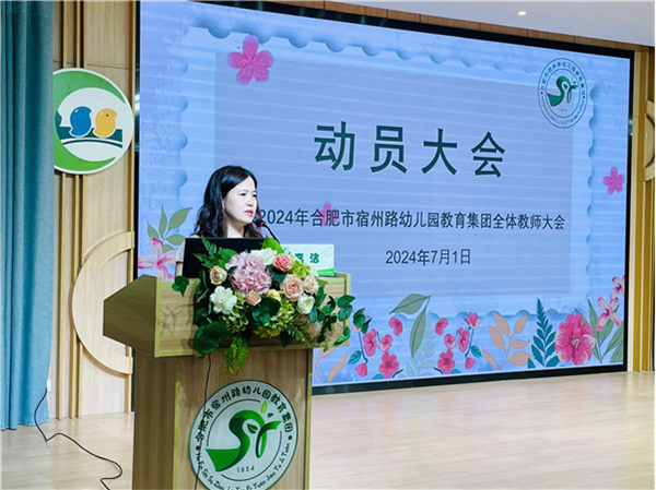 会议伊始,高洁进行动员讲话。她首先对全体教职员工的兢兢业业表示肯定,同时鼓励大家要有新的活力,迸发新的力量。高洁对全体教职员工提出殷切的期许,在宿幼70周年到来之际,希望教师们齐心协力,饱含教育情怀,共同致力于宿幼发展,创造更多的辉煌成就!