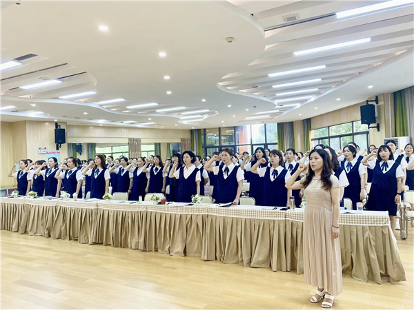 师以德为本,育师先育德。思想政治学习结束后,全体教师站立,举起右拳,发出掷地有声的铿锵誓言。伴着庄严的宣誓声,教师们的心灵接受着洗礼,心中涌动着一种更为强烈的教书育人的激情,感受着作为一名幼儿教师的光荣与职责。一份宣誓,一份使命,是新时代赋予师德师风的要求。