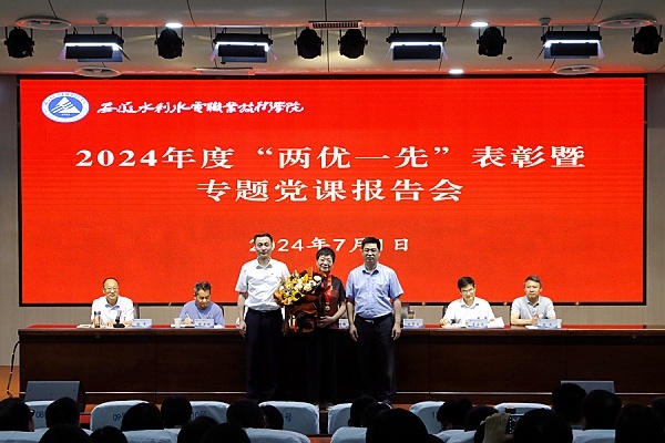 7月1日,安徽水利水电职业技术学院2024年度“两优一先”表彰暨党纪学习教育专题党课报告会在图书馆学术报告厅举行。党委书记胡珩峰出席并作专题党课报告,党委副书记、院长方贤文主持会议,院校领导严东、李宗尧、陈送财、陈彪、陈平参加会议。