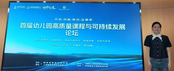 为进一步推动学前教育的高质量发展,贯彻落实《幼儿园保育教育质量评估指南》精神,注重对学前教育质量的评估,更新教育教学理念,促进教师专业化发展。7月15日—19日,合肥市直属机关幼儿园教师冯瑞参加由合肥幼儿师范高等专科学校在内蒙古鄂尔多斯市举办的“开放·创新·整合·全要素——首届幼儿园高质量课程与可持续发展论坛”。