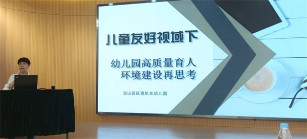 上海市宝山区直机关幼儿园园长蒋静围绕主题“儿童友好视域下——幼儿园高质量育人环境建设再思考”,讲述幼儿园自转制以来如何通过特色课程、自主游戏、儿童视角三个阶段发展成为市示范园的历程;围绕“以无界融合的课程视角提供广阔而丰富的学习天地”,蒋静以“无界,许孩子一个无限可能的未来”的课程理念讲述如何通过空间“破界”、时间“破界”、视野“破界”将幼儿园打造成“无界”教育空间,支持儿童个性化发展。当高质量课程建设遇上友好创建,参训学员需要思考如何从自然生动的儿童视角,从无界融合的课程视角,从开放创新的未来视角三个视角,去进一步的思考自己所在园所的发展。