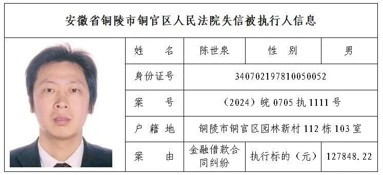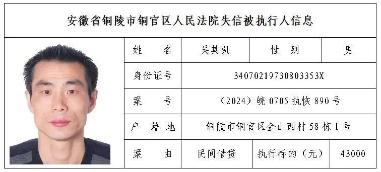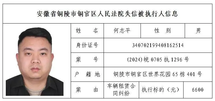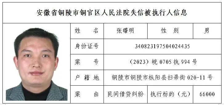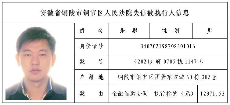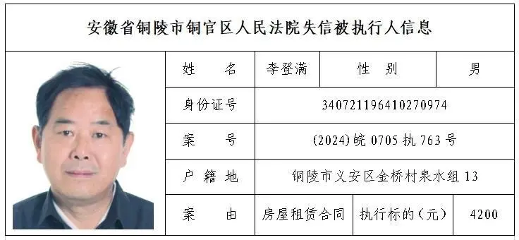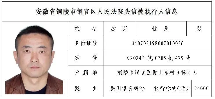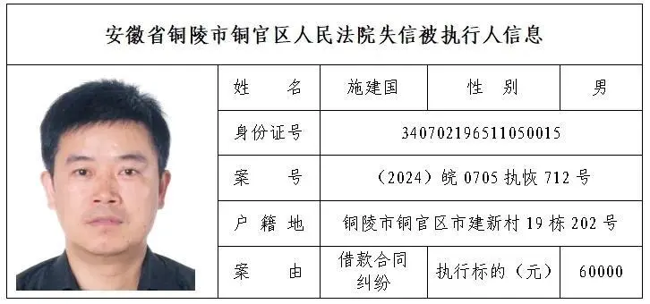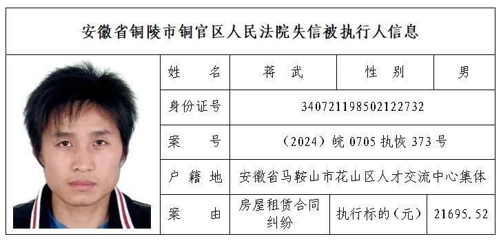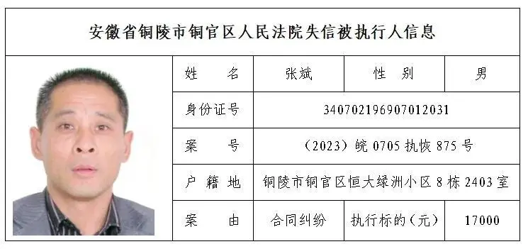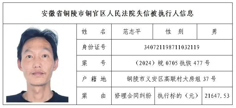 安徽省铜陵市铜官区人民法院失信被执行人名单(第三批)