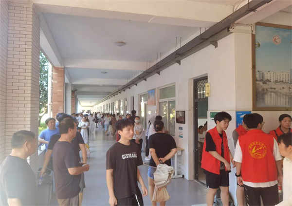 校园内人潮涌动,热闹非凡,在迎新志愿者的指引下,高一新生及家长们满怀憧憬踏入这所历史悠久的学府,即将开启新的高中学习征程。